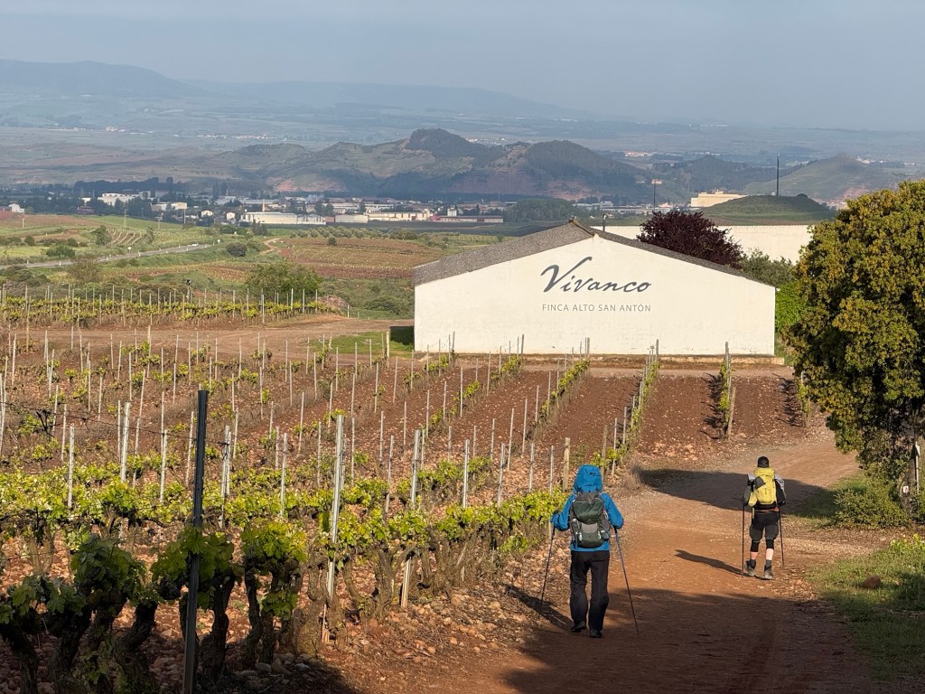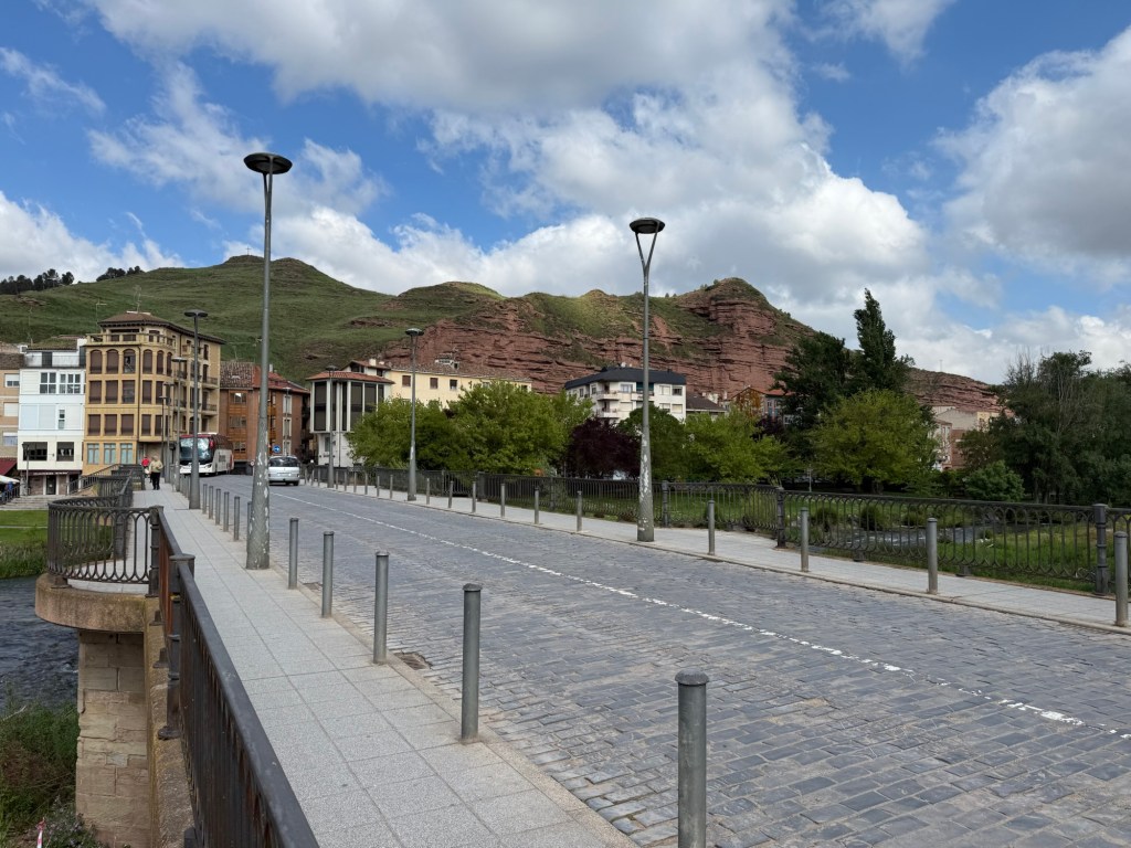 Leaving Nájera, the path climbed steeply until it leveled out onto a plateau of vineyards, their green rows stretching into the distance. In Azofra, I stopped into a store for another beer before continuing to Cirueña. I remembered Cirueña from my 2014 hike—a failed golf course community, a casualty of the 2008 recession. Now, nearly 20 years old, it’s showing its age. The houses, now mostly occupied, stand in eerie silence during the day, the infrastructure crying out for a pressure washer and some landscape work. All these years later and it still feels like a ghost town.