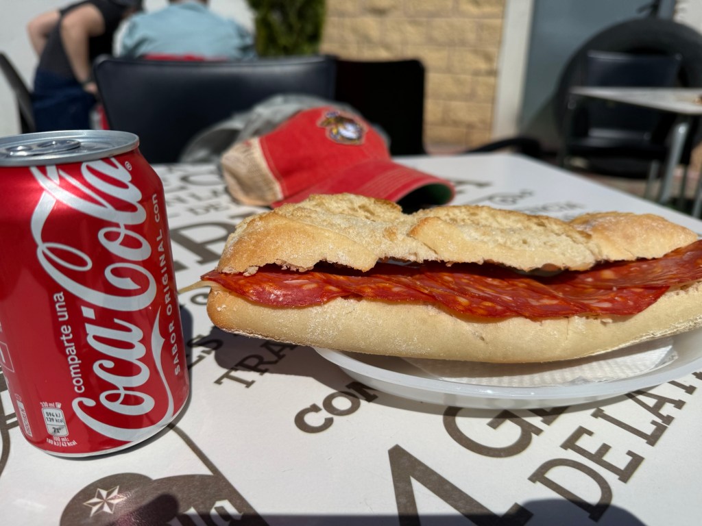 Pushing on, I reached Torres del Río and found a small café. After my 42-hour fast, I broke it with a ham, cheese, and tomato bocadillo, slathered with olive oil. With only €3.70 in my pocket and the sandwich costing €3.50, it was pure luck I could eat—Torres del Río has no ATMs, and no one takes cards.